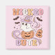 O design de Cute Wicked apresenta um texto colorido de melão, branco, amarelo, lavanda e rosa que lê Cute Wicked e tem um fantasma com um chapéu de bruxa, abóboras de jack-o-lanterno, e pequenos morcegos voando! Este design de Dia das Bruxas Mágico é excelente tanto para crianças quanto para adultos!