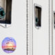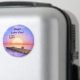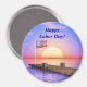 Um imã com o meu trabalho de arte de computador de uma doca com a bandeira americana e um sol. Texto personalizável diz "Feliz Dia do Trabalho!"