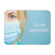 Avise a qualquer médico que são apreciados com esta fotografia de uma médica em uma máscara para dizer Feliz Dia dos Médicos.