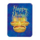 Belo e iluminante desejo de Feliz Diwali em uma mão pintou velas e ímã de fundo estrelado.