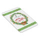 Um ímã flexível de Natal com uma coroa aquosa. Agulhas de pinheiros verdes, cones de pinho e bagas decorativas constituem esta coroa festiva. Dentro a coroa são alguns ornamentos decorativos e as palavras" podem ser Feliz e Brilho. Escrito em uma fonte vermelha da moda. Um padrão verde e vermelho com quadrados brancos ao longo da fronteira.