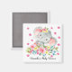 Um belo e feliz ímã elefante para um chá de fraldas feminino. Altere o plano de fundo clicando em personalizar e usar o nosso selecionador de cores!. Itens correspondentes disponíveis em nosso compro.