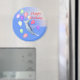 Magnet com minha imagem original de um golfinho vestindo uma festa cercada por balões com um céu azul atrás dele.