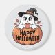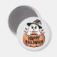 Feliz imã do Cafeína do Halloween. Dentro uma abóbora gigante, um fantasma dá um café debaixo do seu chapéu de bruxa torto. Boo-hoo? Mais como o brew-hoo! ele ri, o bigode de espuma brilhando. Feliz Halloween, amigos cafeeiros ficam assustados e acordados!