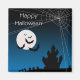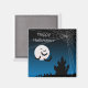 Feliz imã de Halloween com uma vista assustadora de um castelo assustador.