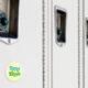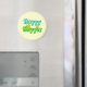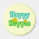 Um legal design de texto hippie em cores verdes, azuis e amarelas, dizendo Feliz Hippie.