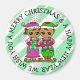 Pequenos elfos étnicos bonitos e flocos de neve, desenhos animados desenhando íman de geladeira de Natal.