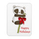 Panda adorável no bambu com grande arco festivo vermelho e texto "Feriados Felizes"