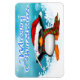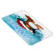 Feliz Natal Pinguim Flexível Magnets apresenta um fundo de turquesa decorativo com neve e flocos de neve, um Pinguim Feliz segurando uma bengala doce vestindo um chapéu de Papai Noel. O texto decorativo, azul e branco, é Feliz Natal. Presente perfeito para estocador de Natal! Este design foi criado usando o original artwork©delightful-doodles.com (http://delightful-doodles.com/)
