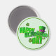 Íman redondo com "Ruas Felizes. Dia de Patrick" impresso em grandes letras verdes com um chapéu verde de duende com uma banda de chapéu roxo, e com vergonhas aqui e ali em verde-claro. Fronteira verde. Veja ímã quadrado correspondente e ímã de escultura de fotos acrílicas. Veja a Rua inteira. A coleção do Imã do Dia de Patrick nos TOUCHES ESPECIAIS | Seção Favoritos para festas.
