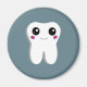 Um ímã com um desenho de um dente branco grande com um sorriso kawaii fofo e grandes olhos felizes.