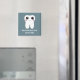 Um ímã com um desenho de um dente branco grande com um sorriso kawaii fofo e grandes olhos felizes.