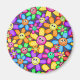 Um padrão perfeito brilhante, colorido e alegre, feito de flores margaridas com rostos sorridentes felizes.