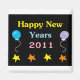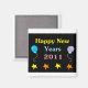 Felizes anos novos 2011. O ímã de anos novos divertidos tem balões e estrelas coloridos.