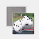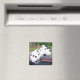 Apresenta uma foto de felpudo preto e branco que pendura de um espelho retrovisor. Faz um presente excelente para um entusiasta do carro.