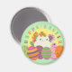 Ilustração adorável, cores pastéis, ímã Felz pascoa único com gato branco giro, ovos coloridos e flores.