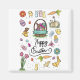 Uma Páscoa e uma design colorida com coelhinhos fofos, pintinhos de bebês, flores, ovos e doces!