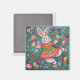Felz pascoa! Um coelho felz pascoa dança com flores e ovos decorados.