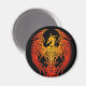 Esta design de fênix vermelha e amarela é decorada com espirais tribais e padrões de pontos correntes. As asas simétricas estendem-se de cada lado do padrão enquanto a cauda cai pelo centro formando um ponto na base. As linhas em negrito são destacadas, que criam um brilho sutil na superfície. Esta fênix agressiva, mas elegante, senta-se sobre um fundo negro puro que cria um design de ímã bonito e na moda.