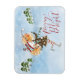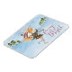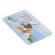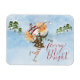Design de cartão de Natal moderno e caprichoso apresenta gengibre (vermelha), menina pelada para patinação no gelo, esfolada em adoráveis roupas de inverno sobre fundo aquoso com texto vermelho festivo "Feliz e Brilho"