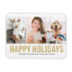 Férias Felizes | Adicione um pouco de brilho à sua temporada de férias com nosso ímã de Natal personalizável, com letras brilhantes de ouro que chamam a atenção! Este ímã festivo é uma maneira deliciosa de mostrar sua foto de feriado favorita enquanto envia desejos calorosos a amigos e familiares. As elegantes letras brilhantes douradas criam um efeito de brilho que adiciona um talento festivo ao seu ímã, fazer-o uma decoração de destaque para qualquer casa. Nossa ferramenta de personalização fácil de usar torna simples design seu ímã em apenas alguns cliques, permitindo que você se concentre na alegria da estação. Espalhe a alegria do feriado com um toque personalizado! Ordene o seu ímã de Natal personalizável hoje e crie uma espumante manutenção que trará sorrisos para os rostos de todos nesta época festiva!