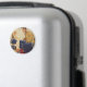 Ilustração antiga de viagem com uma família indo de férias carregando sua bagagem. O pai vestido com terno e gravata está segurando malas, seu filho tem outra mala em seu carrinho e a filha está prestes a abrir a porta da frente para ele. As crianças estão ansiosas para ir em uma viagem.