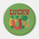 Esta divertida ilustração original de ferraduras de sorte traz a palavra "Sorte" com algumas ferraduras vermelhas, amarelas e laranja e quatro trevas de folhas para trazer muita sorte e boa sorte!