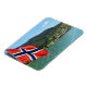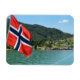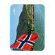 Imagem de foto retangular de souvenir com a bandeira norueguesa num ferry entre Solvorn e Urnes num fiorde na Noruega.