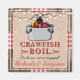 Este design de estilo rústico apresenta um fundo de madeira com uma fita de estilo de toalha de mesa de piquenique vermelha e branca. Em cima disso, há uma textura de aniagem com um lagostim de desenho animado fofo. A fonte serifada vermelha e preta e a fonte manuscrita são totalmente personalizáveis para o seu evento, seja um cozido de lagostim, lagosta, frutos do mar ou peixe. Celebre seu noivado, aniversário, formatura ou qualquer evento com estilo! Estes fazem ótimos brindes de festa para guardar!