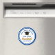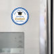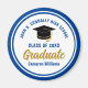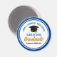 Esses modernos ímãs de festa de formatura personalizados azuis, brancos e dourados apresentam a tipografia típica de sua universidade ou nome da faculdade para a classe de 2025. Personalize com seu ano de graduação próximo ao script manuscrito chic e boné formando preto para um excelente personalizado a favor do formando de parabéns.