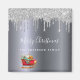 Um fundo metálico falso e prateado com um pingado falso, um pouco de brilho e luxo para uma festa de Natal. O antigo trenó vermelho do Papai Noel cheio de presentes como decoração. Com o texto: Festa de Férias. Modelo para seu nome de família, letras brancas.