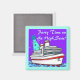 Quer o seu cruzeiro seja celebrar uma ocasião especial, ou só para divertir-se, você tem certeza de que vai gostar de estar num humor comemorativo enquanto navega no alto mar. Este ímã divertido expressa um jovem no espírito de cruzeiro.