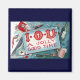 Ilustração antiga de pessoas e estilos de vida de festa com uma variedade de vícios e o texto IOU Um Bom Momento. Celebre com champanhe, caneca de cerveja, fumando cachimbo, charutos e cigarros, farra com mulheres, direção imprudente e um baralho de cartas e fichas para jogar pôquer e apostar.