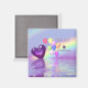 Um imã de aniversário de 3 de fevereiro com coração ametista, balões e arco-íris.