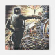 Ilustração vintage imagem de ficção científica apresentando uma cena de fabricação futurista com um robô dirigindo máquinas trabalhando.