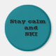 Para o esquiador da sua família ou você: Padrão, 2 1/4, ímã redondo com Fique calmo e aspas de esqui em fundo azul. Os magnetos estão disponíveis em outros materiais, formas, cores e tamanhos no Zazzle a partir da nossa loja BsApparelPlus. Confira itens semelhantes em nossas coleções "Manter Calma e Whateva" e "Apenas Magnetos". Obrigados para comprar conosco!