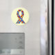 A ajuda espalhou a mensagem da consciência do autismo ostentando t-shirt da fita da consciência do autismo, hoodies, botões, chaveiro, sacolas, ímãs, canecas, e outros artigos com a fita do awreness do autismo em partes azuis, vermelhas, e amarelas do quebra-cabeça.