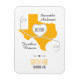 Uma maneira casual e divertida de compartilhar sua alegria bem antes do seu grande dia. Mande estes cartões salve a data do Texas para toda a sua família e amigos. Design apresenta uma forma de estado grande com um coração feito de uma fita branca com traços pretos. Espaço na dentro do coração para o seu encontro e na base para o seu local. Mistura perfeita de classe e rústica, caso não tenha decidido com que estilo está indo! Cores disponíveis na escola do Texas de vermelho, verde, verde escuro, amarelo, laranja, roxo, marrom e laranja queimado, bem como bandeira azul e preto no estado. Produtos correspondentes disponíveis.