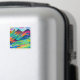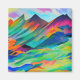 Uma paisagem montanhosa de picos coloridos e prados rolantes.