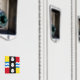 Magnet with a flag of historic county of Bedfordshire, in England, Great Britain; red and gold flag with black vertical band with tree white scallops in the center