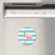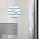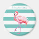 Turquesa e listras brancas, cor-de-rosa-rosa-rosa-flamingo, personalizado ímã.