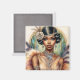 Este ímã apresenta uma espantosa flapper negra no estilo do glamour do cheio Art Deco. Vestida com um vestido cintilante com joias em cascata, faixa de cabeça com joias e sotaques de penas e pelo, ela encarna o espírito da Era Jazz. Seu olhar confiante e detalhes elegantes tornam este design perfeito para amantes vintage ou Excelente Gatsby e fãs de moda 1920.