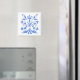 Um único Fleur de lis, com uma coroa e vinhas, num design azul abstrato, numa magneta da cozinha.