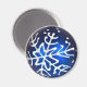 Ímã redondo com uma imagem de um floco de neve travado em azul. Veja a coleção inteira de aníches de Hanukkah na seção HOLIDAYS.