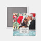 Imã salve o dia de Foto Personalizadas de Casamento. Adicione suas próprias fotos e textos personalizados. Flocos de neve de inverno azul e branco com sotaques prateados. Convites Cartões RSVP Agradecimentos Cartões Obrigado Cartões Janta de ensaio convites Jantas de ensaio