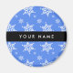 Imã Flocos de neve brancos, azuis, seu nome, personali
