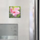 A fotografia original de MaeFlowers neste Magnet apresenta uma flor de hibisco rosa à luz do sol da manhã contra um fundo de folhas verdes. Uma das pétalas de flores, ainda à sombra, tem gotas de chuva sobre ela a partir de um chá de manhã cedo. Os tons de pinks e verdes criam um adorável humor de jardim.