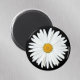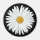 Magneta decorativa para casa ou escritório que mostra a foto de uma flor bonito e branca margarida em um fundo preto. Um design floral adorável! Selecione o estilo e o tamanho do seu ímã.