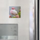 Os magnetos podem ser divertidos, caprichosos e ter frases marcantes. Veja este ímã com uma gota de chuva pendurada num florescimento de flores.