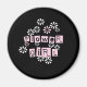 Botões de flores bonito, ímãs, mousépias, cartas e muito mais com fundo preto, texto branco, design de flores rosa e branca.